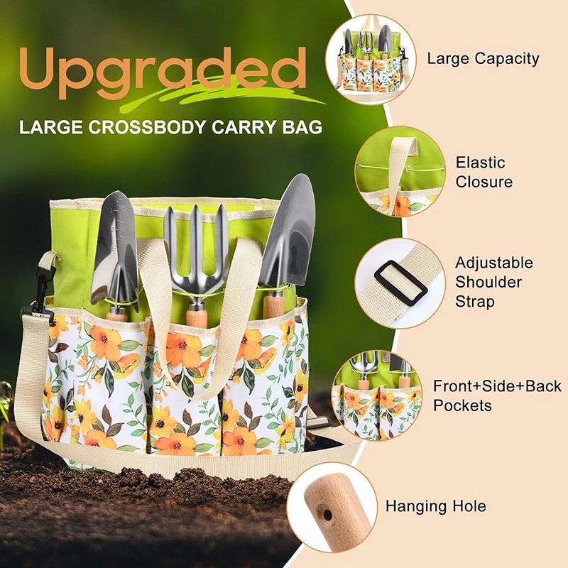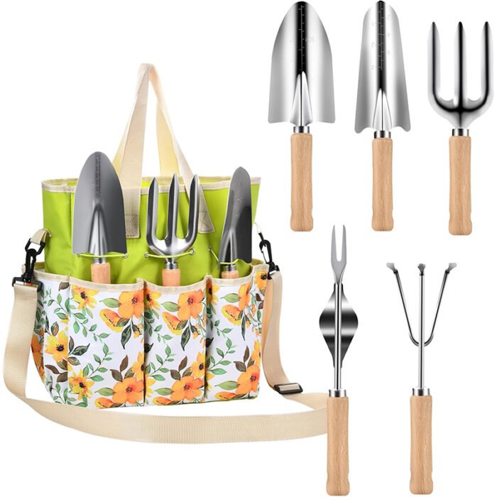 - Ultimate Gardening Tool Set: This comprehensive gardening tool set aims to simplify your gardening tasks. Perfect for both experienced gardeners and beginners, it includes a weeder, hand fork, hand rake, transplanter, trowel, and a crossbody tote bag, providing everything you need to maintain a vibrant garden.